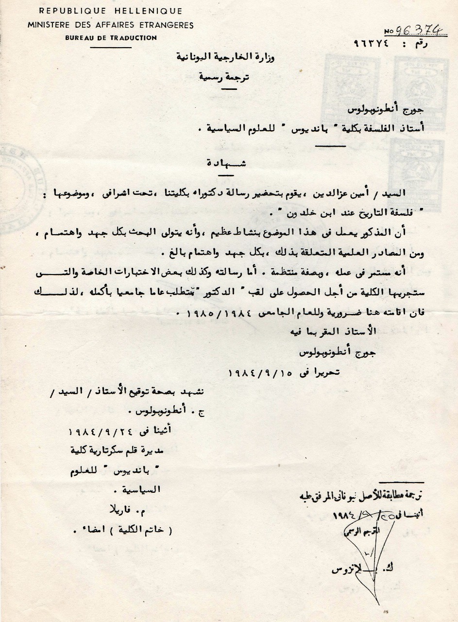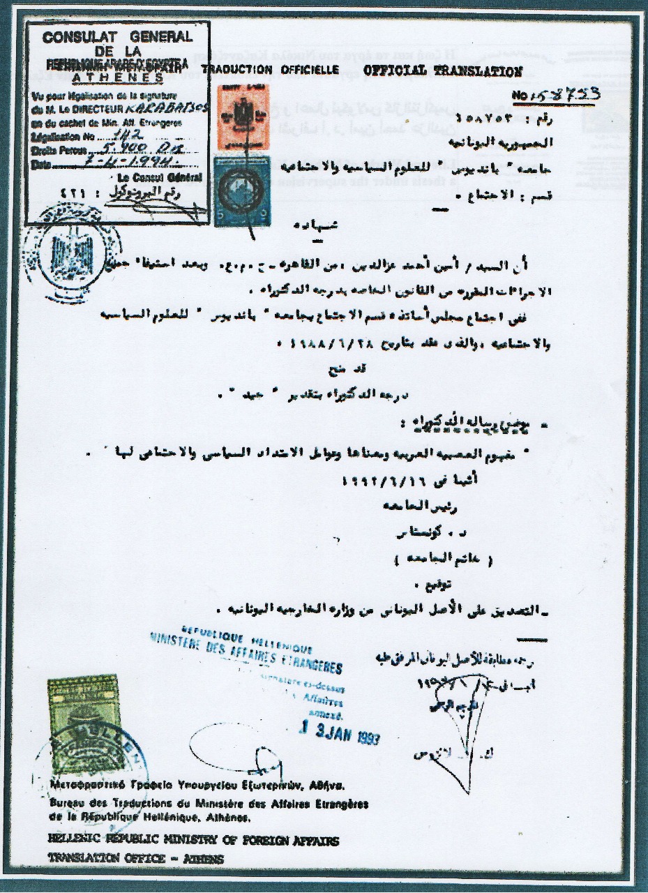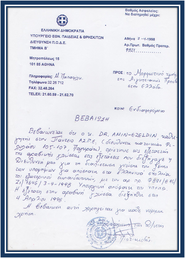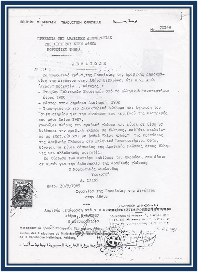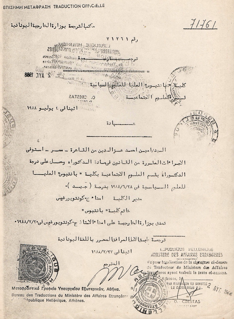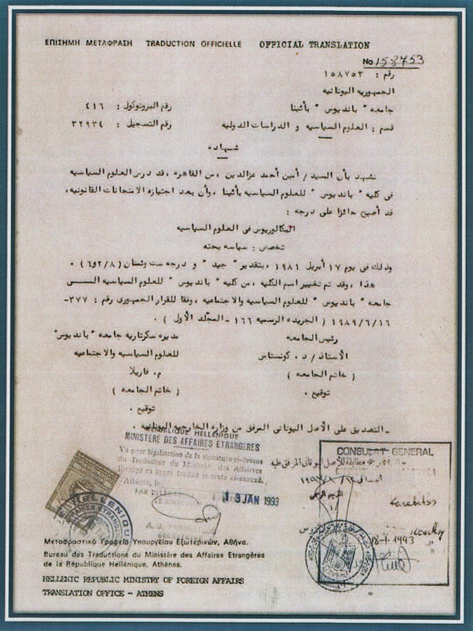Πτυχία του Δρ. Αμιν Εζελντίν -